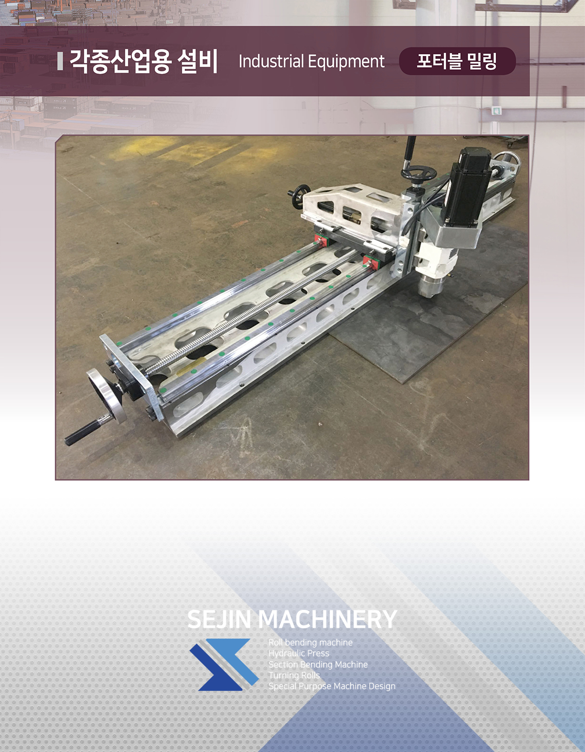 각종산업용 설비 - 포터블 밀링 작성자 최고관리자 | 작성일18-06-02 16:00 관련링크 이전글 목록 본문 SEJIN MACHINERY 이전글 각종산업용 설비 - 디크레딩 밀링 댓글목록 등록된 댓글이 없습니다. 이전글 목록