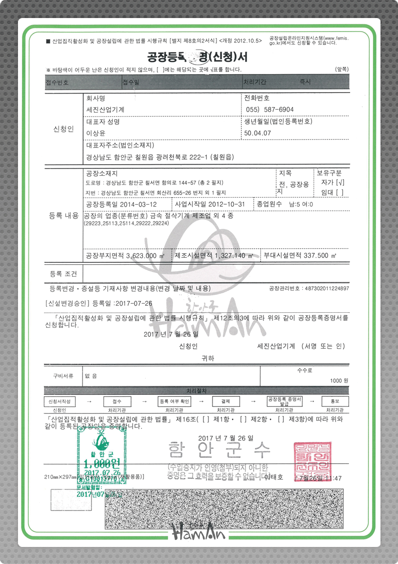 공장등록증 작성자 최고관리자 | 작성일18-05-23 20:58 관련링크 다음글 목록 본문 공장등록증 다음글 정비적격기업 인증서 - 3 댓글목록 등록된 댓글이 없습니다. 다음글 목록